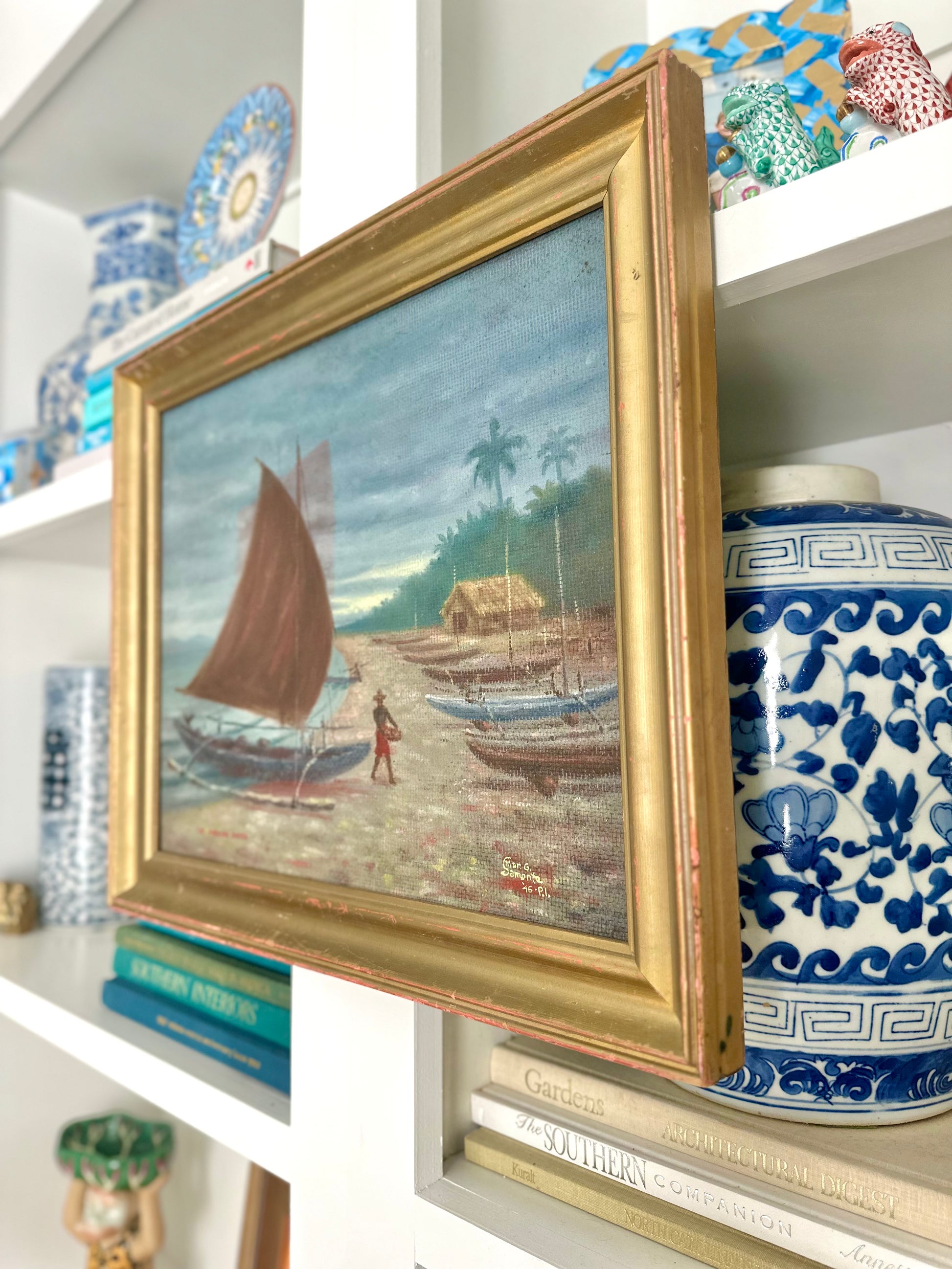 1946 signed Pacific Islands Oil on Board