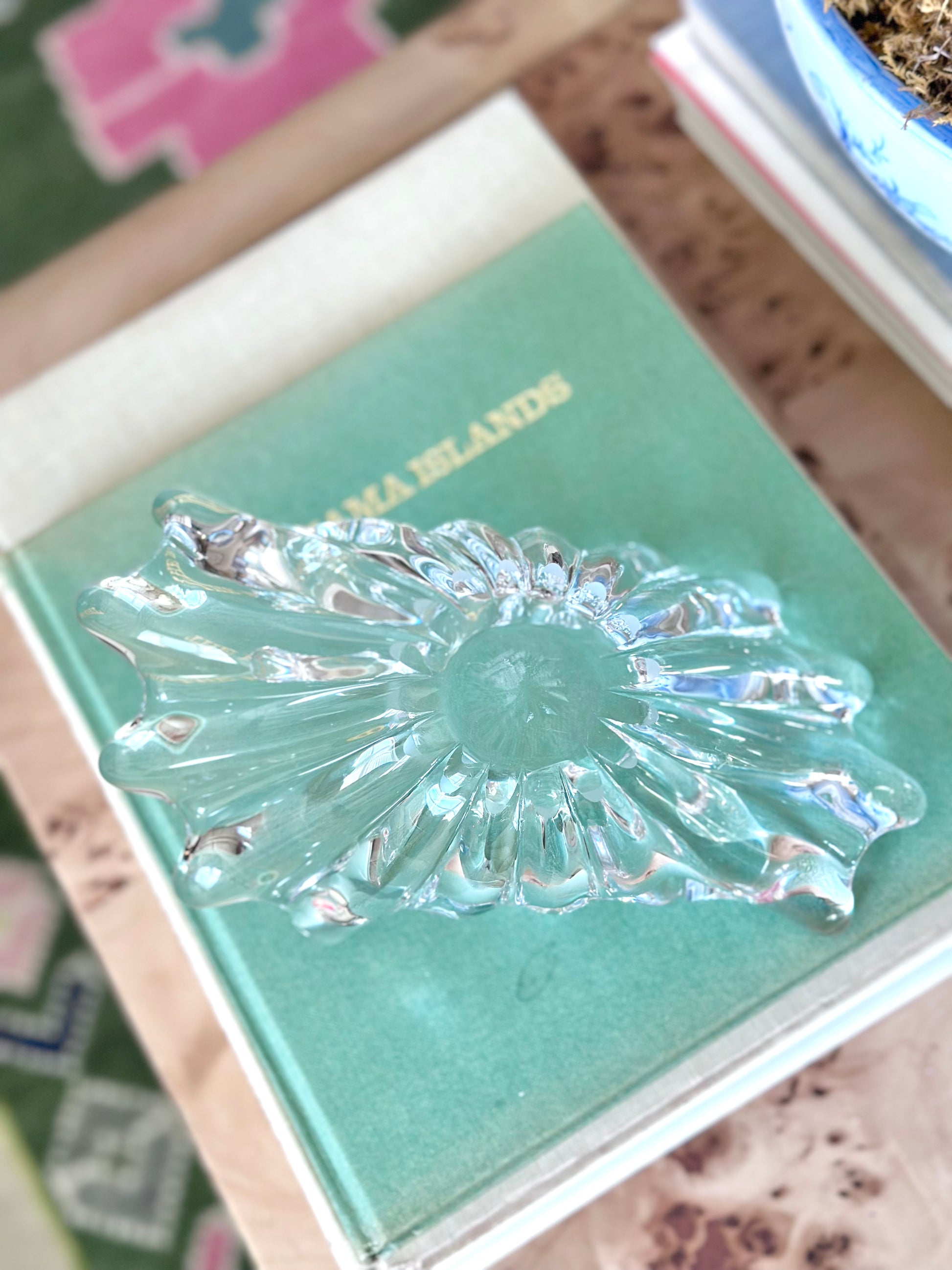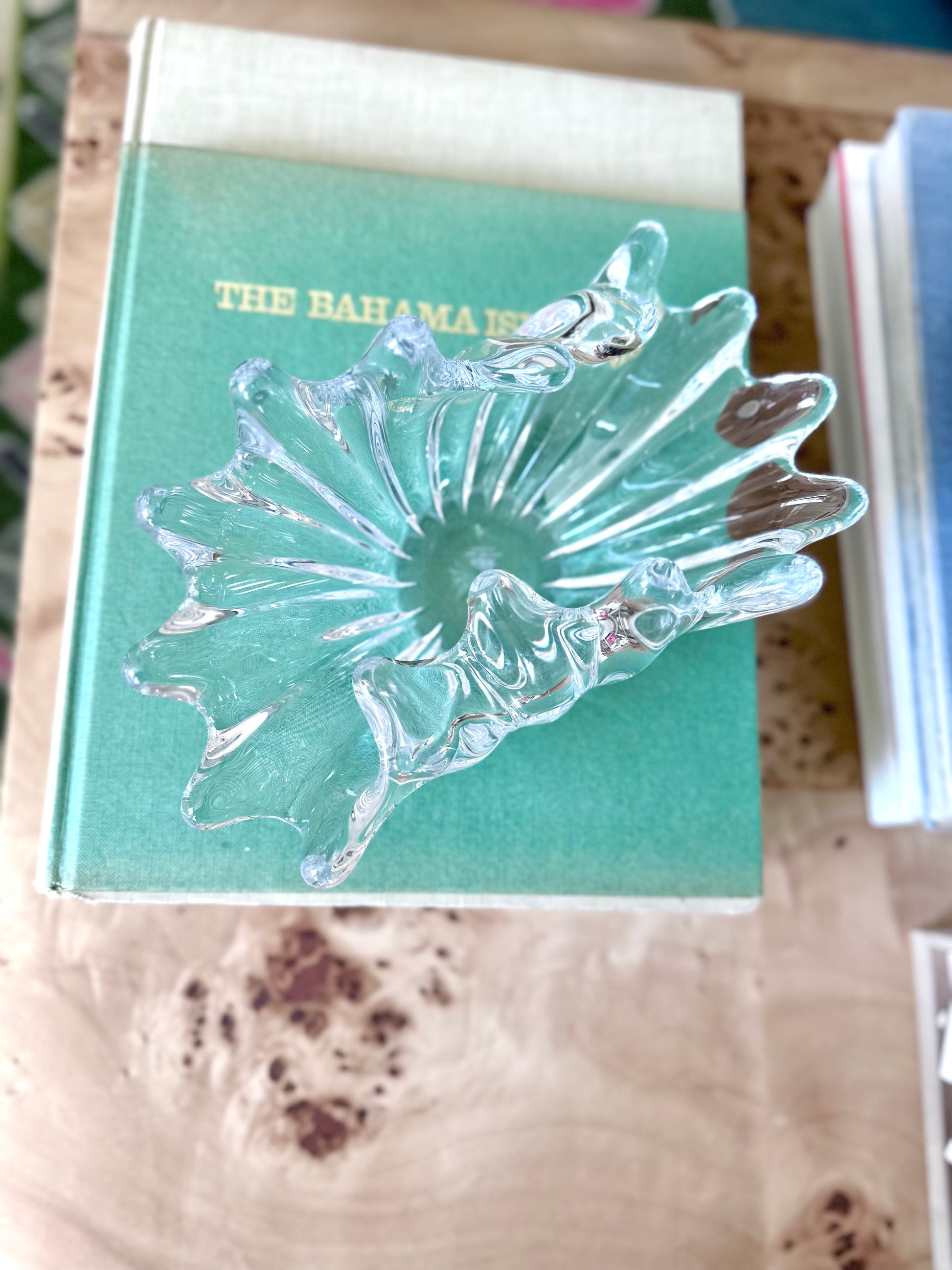 handcrafted French art glass. Mid century modern heavy crystal in free form design.
