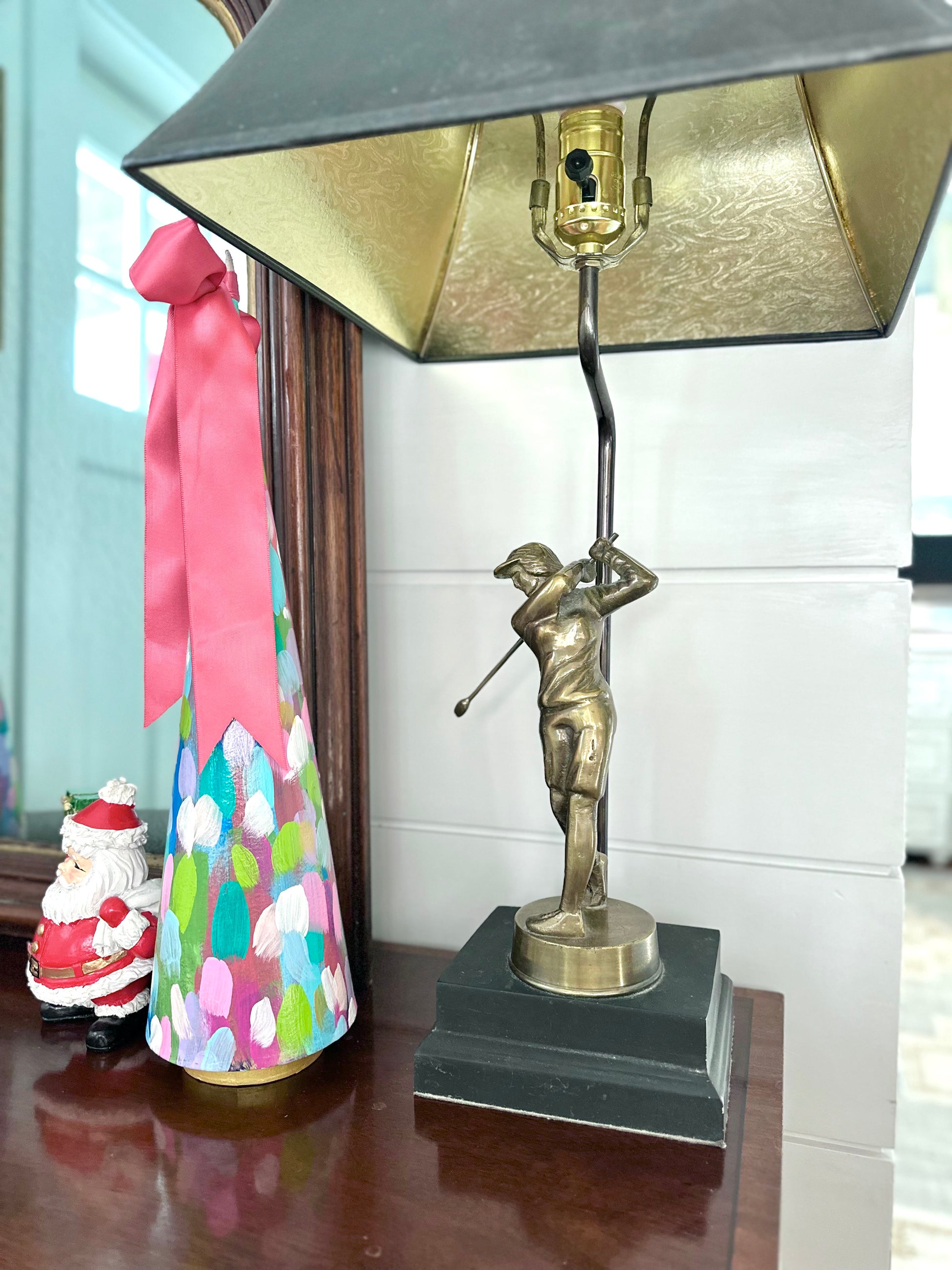 Brass Golfer Figurine Lamp Pair